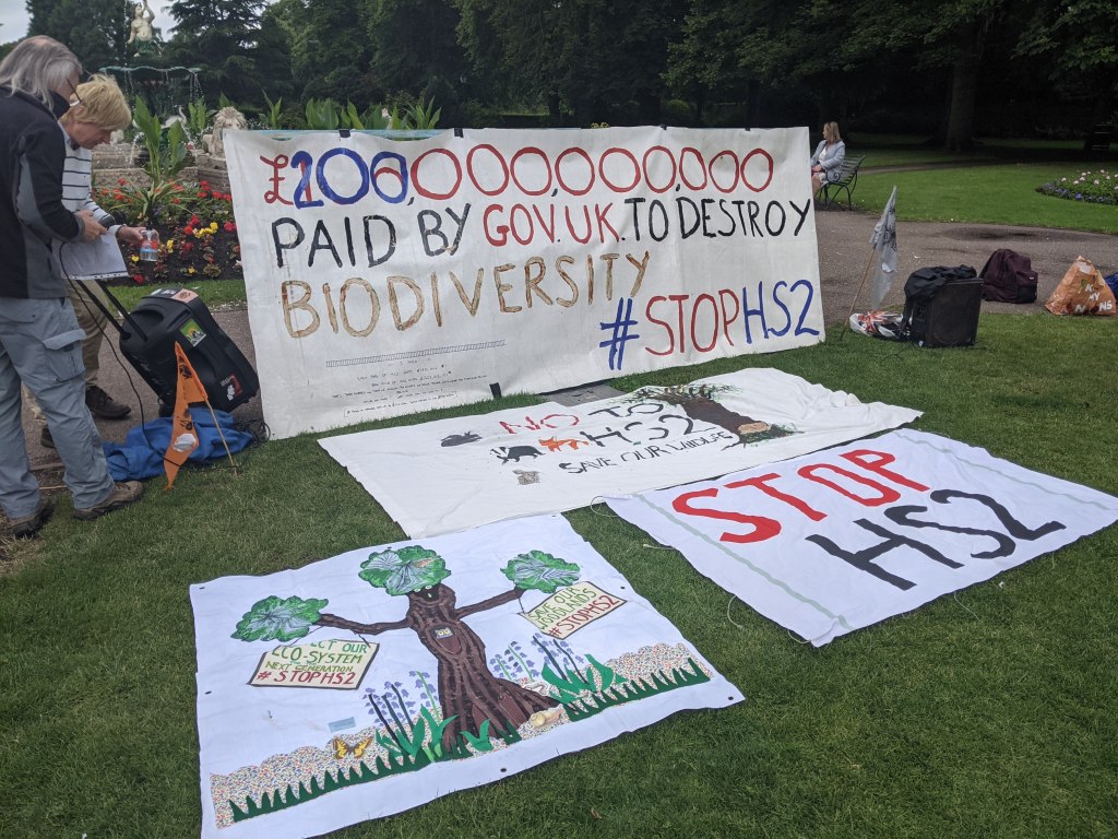 Not 1 More at COP26, 2021HS2 Injunction Court Case 2022Greens Against HS2, 2022-2023Poor’s Piece Eviction, 2021Truth Trail, Summer 2021Bluebell Woods 2021Exhibit the Truth ActionWendover Active Resistance (WAR) CampEuston eviction 2021HS2 Rebellion Day of Action, Birmingham, August 2020The Battle of Denham Ford, September 2020Jones Hill Woods, Autumn 2020The Battle for the Alder Tree, Denham Ford Protection CampJustice for JellytotAnti Injunction Mass Trespass, August 2020Harvil Road, May 2020Crackley Woods, Bat Action, May 2020Train Stoppers, Indra